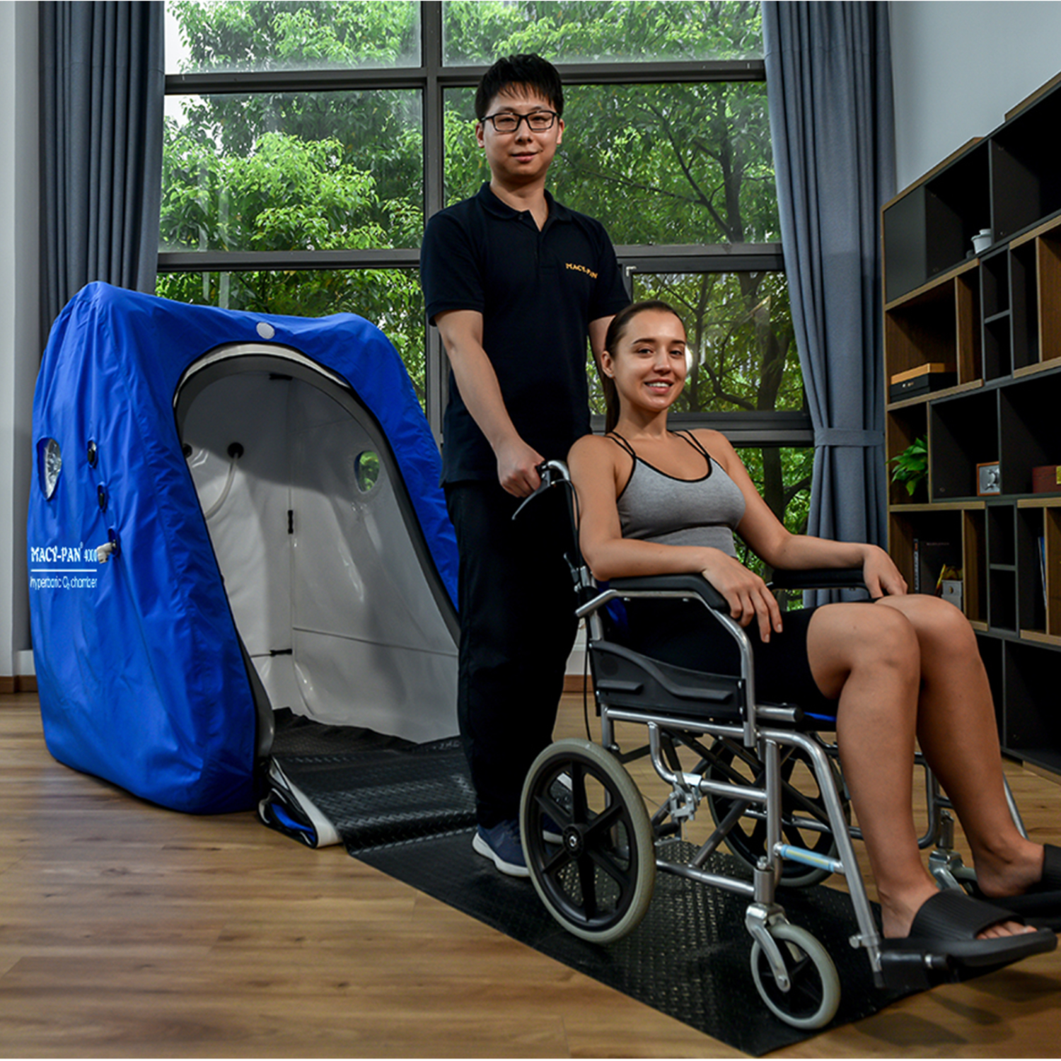 Macy-Pan Hyperbaric Chamber Wheelchair Type - MC4000 - N Type (1.3 ATA 5L) / Without Aluminum Ramp / Jewel Blue is backordered and will ship as soon as it is back in stock.