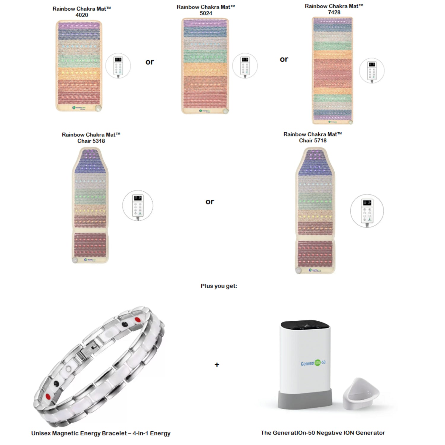 Rejuvenate your mind, body, and spirit with the Rainbow Chakra Mat™ 3rd Edition Gift Set. This complete bundle includes the Rainbow Chakra Mat™, a Negative Ion Generator, and a Magnetic Energy Bracelet our most advanced solution for total wellness and balance.